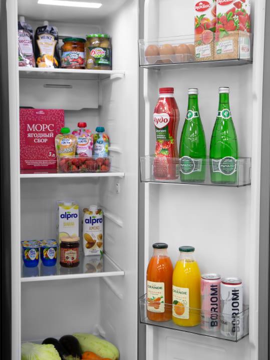 Полки в холодильнике позволяют рационально организовать хранение продуктов, обеспечить легкий поиск и доступ к ним. Основные материалы для изготовления полок — это пластик, стекло и металл. Часть полок можно переставлять по высоте или складывать вдвое или втрое.