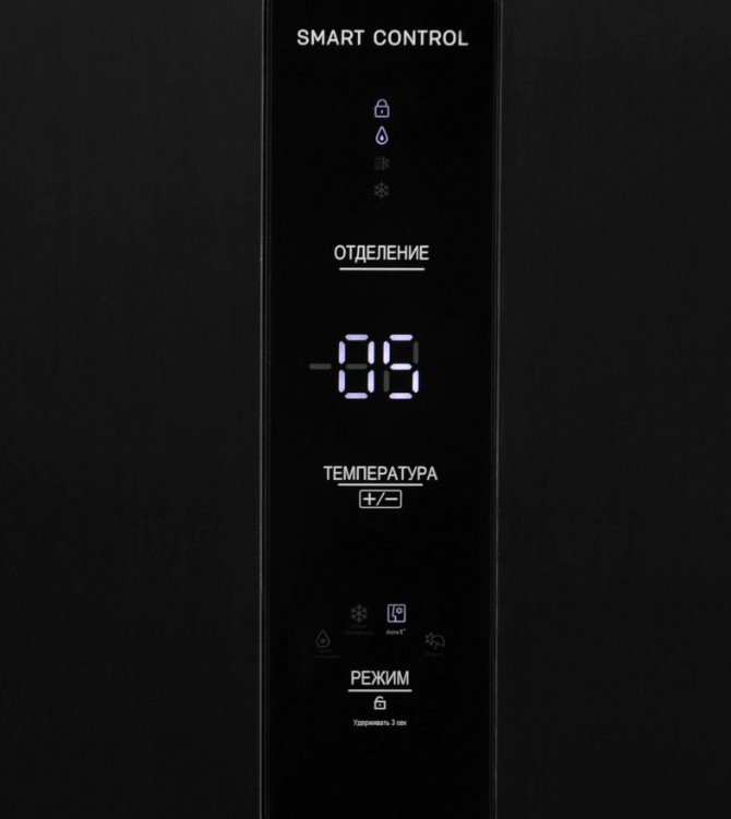 Система управления холодильником позволяет самостоятельно выбирать температуру охлаждения каждой камеры, задавать дополнительные параметры, контролировать работу прибора. П