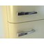 Внешняя ручка может не только послужить для открывания дверцы, но и стать интересной деталью интерьера. Особенно это касается ручек в ретро-стиле со встроенным толкателем и замком. Однако подобные элементы являются достаточно небезопасными, так как холодильник невозможно открыть изнутри. Обычные накладные дверные ручки устанавливаются на холодильник в вертикальном или горизонтальном положении. При этом особенной популярностью пользуются вертикальные ручки, идущие по всей длине камеры. Такая конструкция подойдет для людей любого роста.