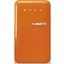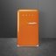 Оранжевый холодильник в стиле 50-х годов XX в. Сверху расположен морозильный ящик объемом 13 л. В холодильной камере есть регулируемые и фиксированные полки, на двери — полки для бутылок, подставка для яиц.