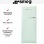 Холодильник Smeg FAB28LPG6 — ретро-аппарат в стиле 50-х годов, который превращает бытовую технику в элемент декора. Зеленый корпус с выразительной внешней ручкой и округлыми формами притягивает взгляд и добавляет характер любой кухне. Размеры 153×60.1×72.8 см делают его заметным, но при этом достаточно компактным для стандартного пространства. Обратите внимание на глубину с ручкой 78.8 см, она важна при планировании установки и проходов.