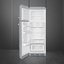 Холодильник с морозильной камерой в стиле 50-х годов серебристого цвета. В разных отделениях разная система размораживания — ручная в верхней, автоматическая в нижней. Двери нельзя перевесить на другую сторону.