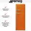 Холодильник Smeg FAB30ROR5 в стиле ретро имеет объем 298 литров. Корпус оранжевого цвета понравится любителям оригинальных цветовых решений. Ухаживать за ним очень легко: холодильная камера размораживается автоматически, а стеклянные полки и ящики для овощей и фруктов можно извлечь для очистки.