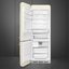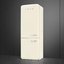 Двухкамерный холодильник в стиле 50-х выполнен в кремовом цвете, который подойдет интерьерам в светлых оттенках. Прибор работает с полным No Frost, который позволяет равномерно охлаждать или замораживать продукты без намерзания инея. Благодаря этой системе также проще ухаживать за холодильником, так как не нужно его размораживать. В холодильном отделении большинство полок регулируются по высоте, на них можно разместить посуду разного размера. Они сделаны из закаленного стекла, которые выдержат тяжелые блюда. В отдельной зоне сохранения свежести вы можете держать овощи, фрукты и зелень дольше, чем в обычном отсеке. В морозильном отсеке три вместительных ящика и ручной ледогенератор.