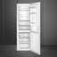 Холодильник Smeg в современном стиле с двумя камерами. В холодильной шесть полок и зона свежести для хранения овощей и других продуктов, которые нужно приготовить через несколько часов. В морозильной 3 выдвижных ящика.