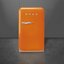 Мини-бар Smeg FAB5ROR6 сразу привлекает внимание насыщенным оранжевым оттенком и плавными ретро-линиями, которые станут ярким акцентом в интерьере. Его компактные габариты 74×40.4×50 см и глубина с ручкой 53.4 см позволяют разместить прибор в малогабаритной кухне, на даче или в гостиной, не жертвуя свободой движения. Внешняя ручка и правый дверной упор упрощают доступ к содержимому, а лаконичная отделка корпуса сочетается с современными и винтажными решениями в оформлении.