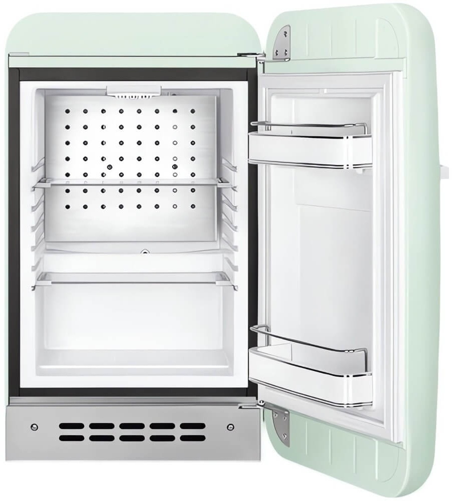 Мини-бар Smeg FAB5RPG6 создан для тех, кто ценит стиль и компактность. Его корпус в пастельно-зеленом цвете привлекает внимание и легко вписывается в интерьер в ретро- или скандинавском стиле. Внешняя ручка добавляет выразительности и делает открытие двери удобным, а аккуратные габариты 74×40.4×50 см позволяют размещать агрегат в нишах и на свободной площади без перепланировки.