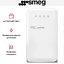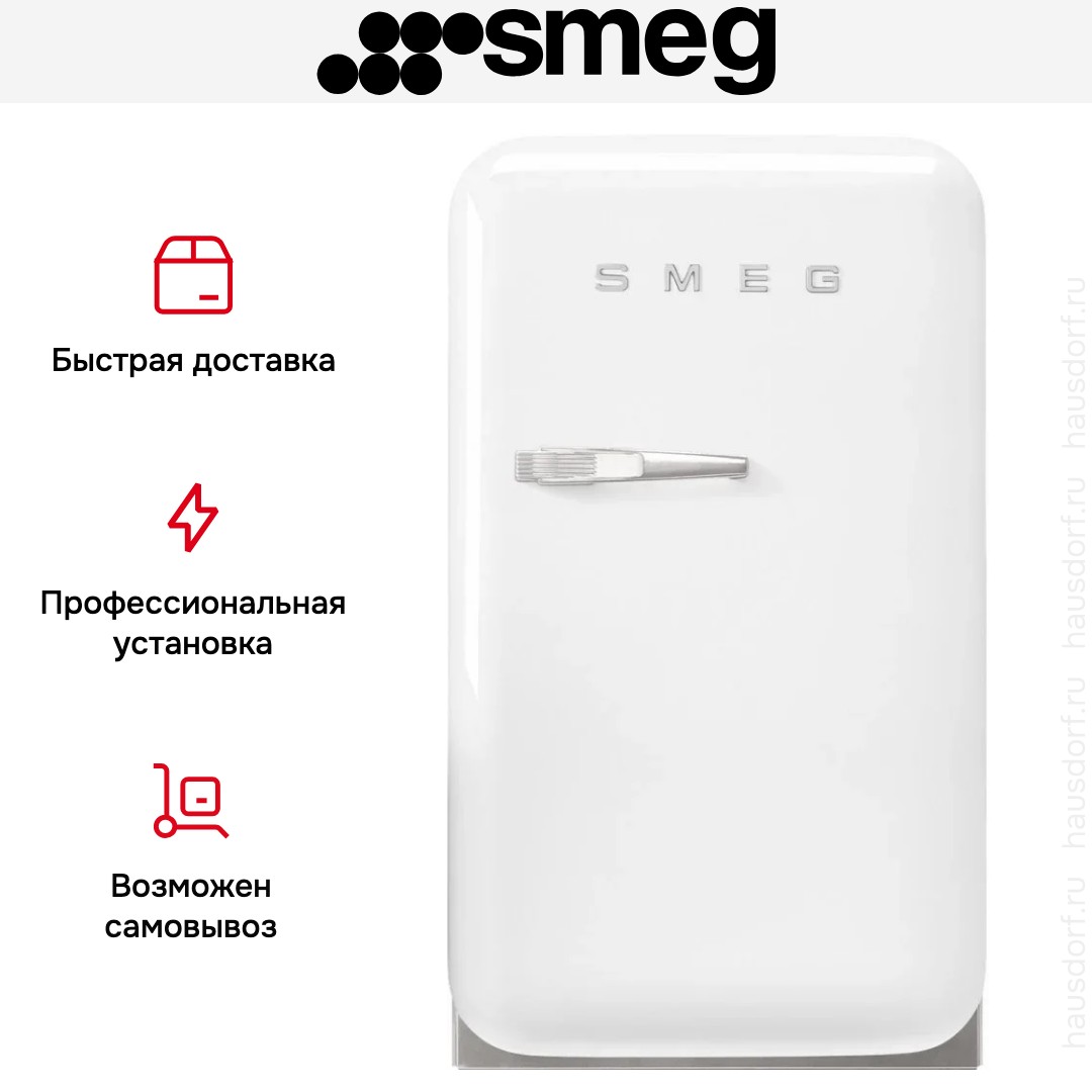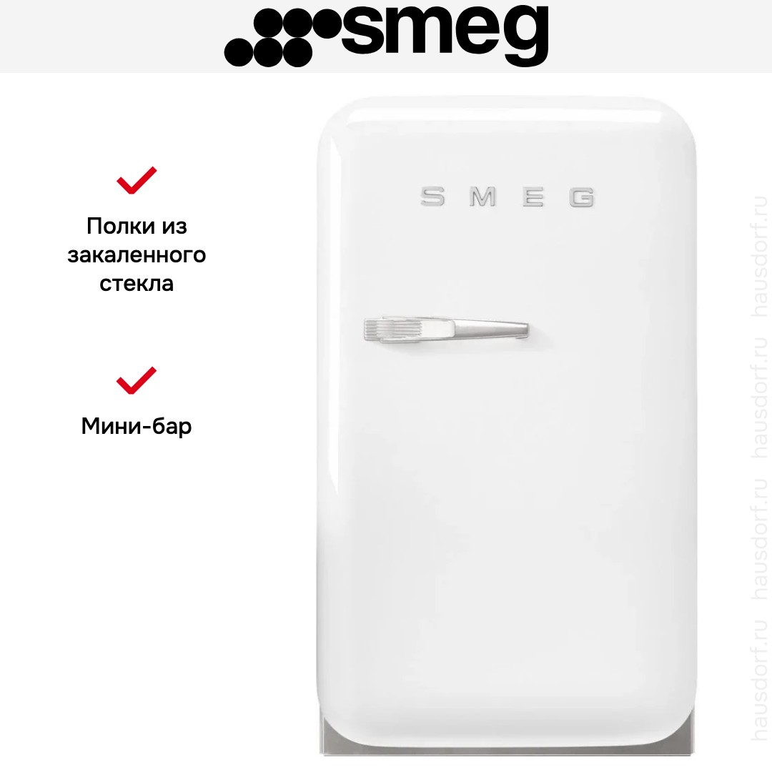Мини-бар Smeg FAB5RWH6 — компактный прибор в характерном стиле 50-х годов, который привлекает взгляд плавными линиями и крупной внешней ручкой. Его белый корпус выглядит уютно и универсально, он легко впишется в кухню, гостиную или гостиничный номер. Габариты 74×40.4×50 см и глубина с ручкой 56.9 см делают устройство удобным для установки в нишу или рядом с мебелью, при этом не жертвуя внутренним пространством.