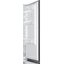 За дверцей в верхней части корпусе расположена электронная панель управления с кнопками и дисплеем — с ее помощью можно регулировать температуру в камерах с точностью до градуса. Холодильная камера имеет систему вентиляции и размораживается автоматически, что позволяет очищать ее без лишних усилий. В камере имеются четыре регулируемые по высоте полки из закаленного стекла и два ящика для овощей и фруктов, а также полки для бутылок с металлической окантовкой, контейнер для масла и форма для яиц на дверце. Функция суперохлаждения позволяет быстро понизить температуру при загрузке большого количества продуктов. Светодиодная подсветка обеспечивает полный обзор содержимого.