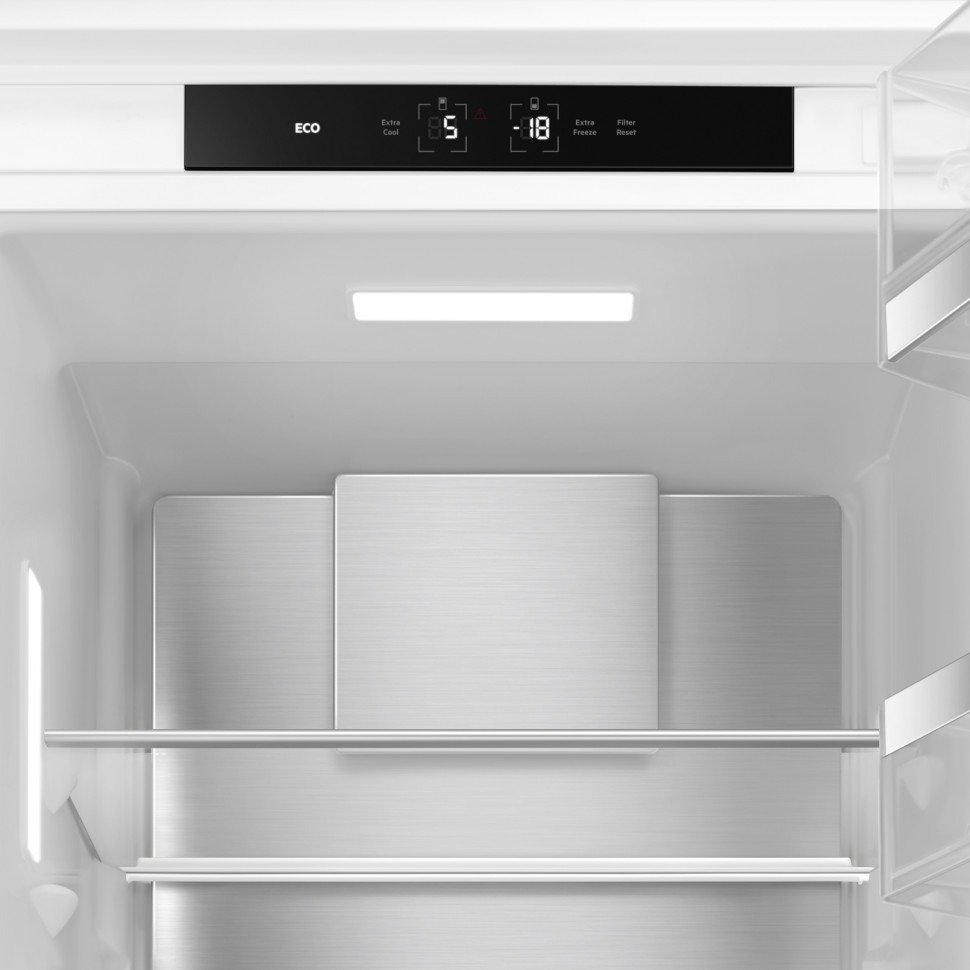 Внутреннее освещение холодильной камеры позволяет обеспечить хороший обзор содержимого и быстро найти необходимые продукты. Чем меньше времени будет открыта дверца холодильника, тем лучше будет поддерживаться в камере выбранная температура, следовательно, улучшится и качество хранения продуктов.