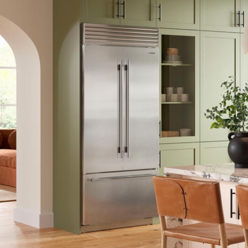 Наиболее разнообразны нестандартные холодильники большого размера типа Side-by-Side или French Door. Глубина таких устройств может составлять до 80-85 см. Как правило, это отдельностоящие модели, которые устанавливают в просторных помещениях. Несколько реже встречаются отдельностоящие холодильники увеличенной глубины с морозильной камерой сверху или снизу: их глубина может составить около 70-75 см. Среди них имеются как модели азиатского типа с морозильником сверху, так и европейского типа с морозильной камерой снизу — например, производства Liebherr.