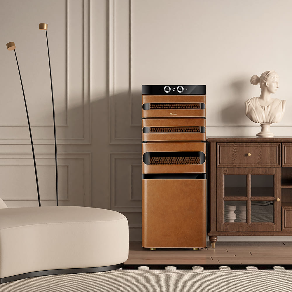 Установлен на воздуховоде, чтобы удалять примеси и запахи, которые могут нарушить выбранные условия хранения сигар.