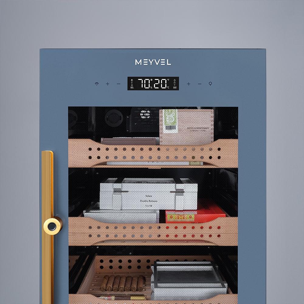 Индикация температуры предназначена для визуального контроля за датчиками. Таким образом вы сможете отслеживать текущий уровень температуры и следить за общим состоянием хьюмидора. Так, вы сможете поддерживать необходимые условия для хранения сигар.