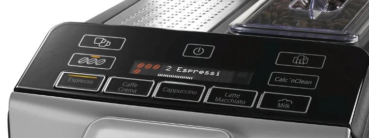 Дисплей в кофемашине позволяет быстро и без труда регулировать параметры работы и контролировать ход приготовления, подсказывает порядок действий и предоставляет возможность выбора вариантов управления при помощи меню. На экране отображается полная информация о состоянии устройства, визуализируется процесс приготовления, появляются предупреждения о том, что необходимо пополнить контейнеры для воды и зерен, а также выводятся сообщения об ошибках.