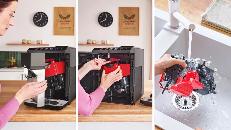 Съемный заварочный блок в кофемашинах — узел, который отвечает за основные действия во время приготовления напитков без участия человека. Он постоянно соприкасается с молотым кофе и горячей водой и поэтому легко загрязняется. Съемная конструкция заварочного блока означает, что узел можно легко извлечь для очистки и промывки, а также смазывания. В процессе очистки с помощью специального моющего средства удаляются все осевшие на деталях кофейные масла, а также остатки старой порции порошка, чтобы исключить его смешивание с новой. Уплотнители и направляющие обрабатываются пищевой смазкой.