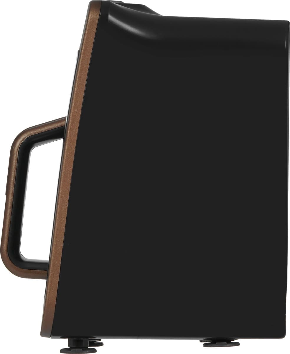 Визуальные характеристики кофемашины играют важную роль при выборе. Цвет корпуса этой модели — коричневый. Основной материал поверхности — пластик.