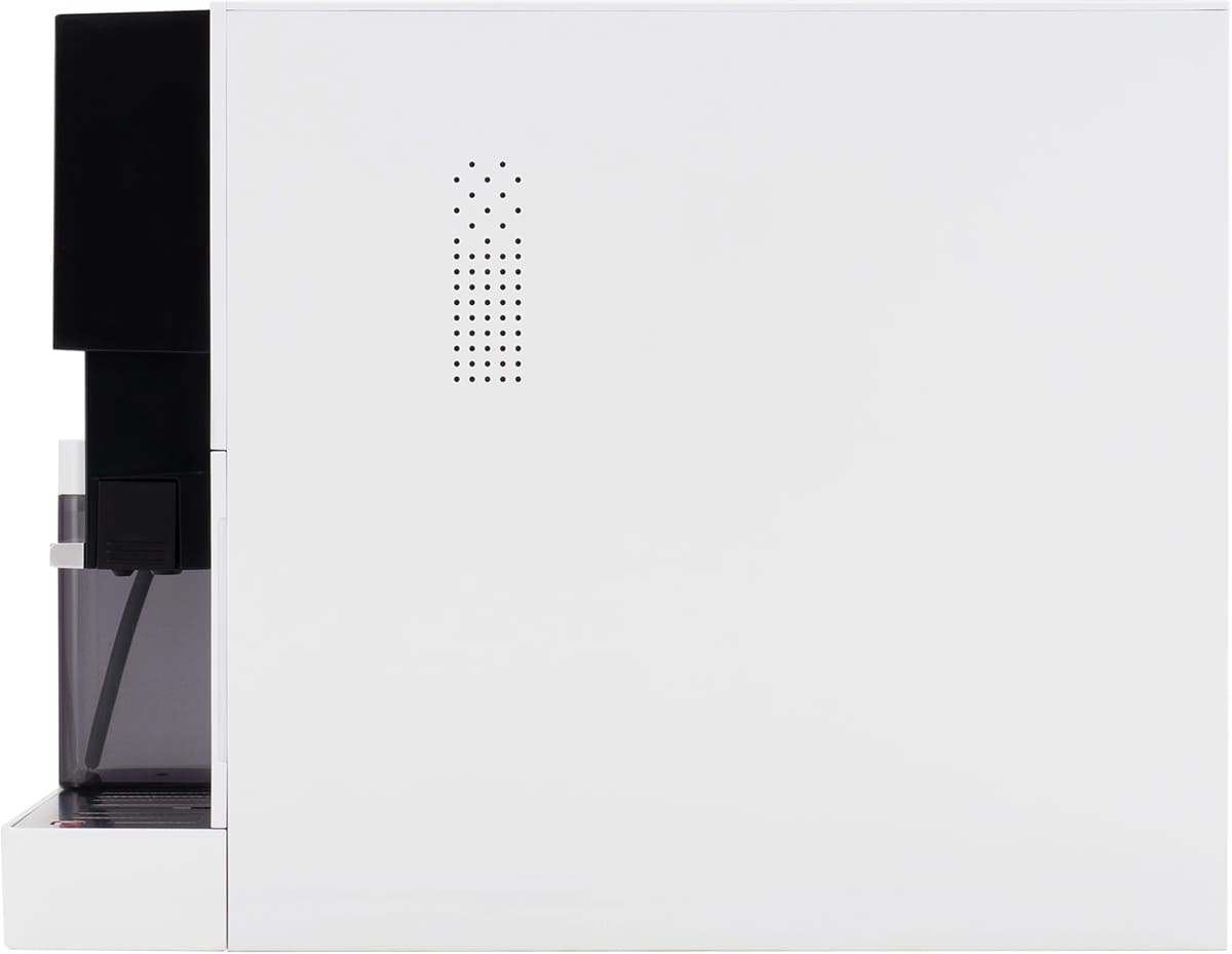 Визуальные характеристики кофемашины играют важную роль при выборе. Цвет корпуса этой модели — белый. Основной материал поверхности — пластик.