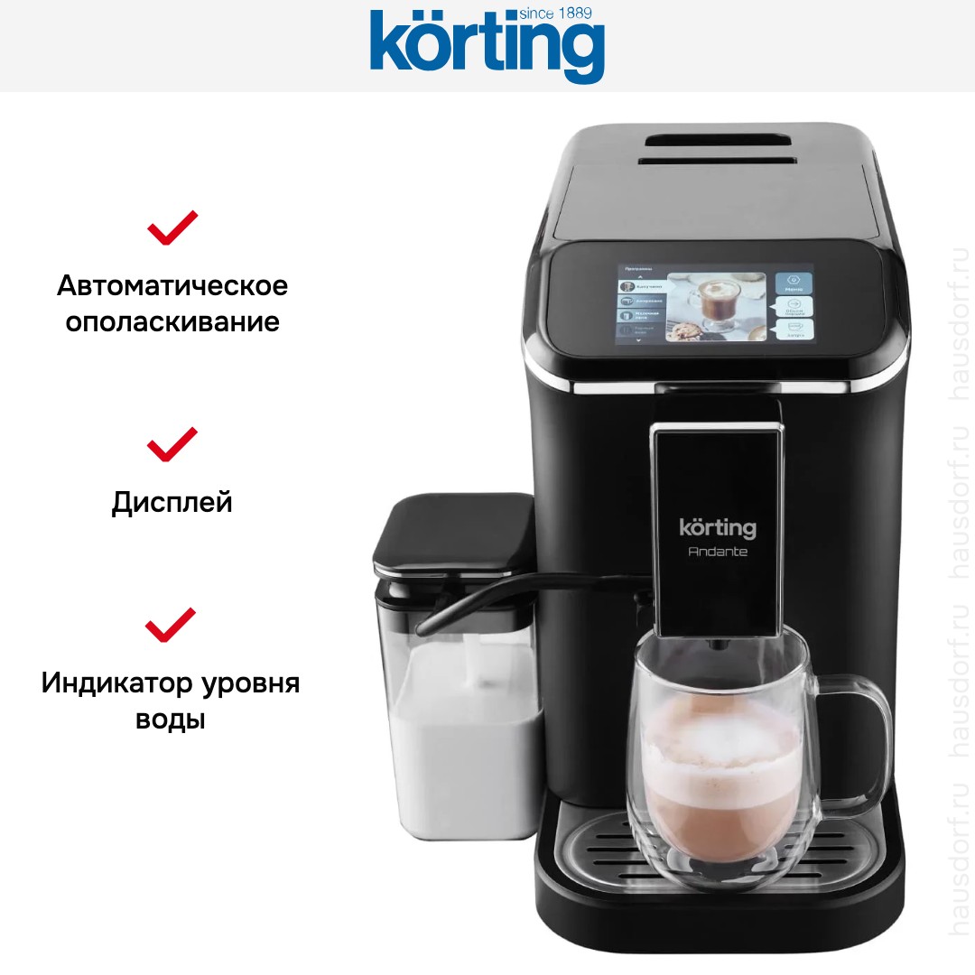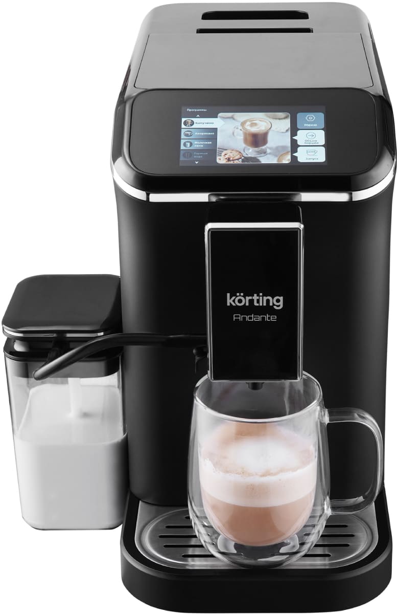 В модели Korting KACM 2002 Andante используются сразу два типа кофе — молотый и зерновой: это расширяет ваши возможности и увеличивает разнообразие напитков, которые можно приготовить с отличиями в крепости, ароматности и терпкости. Автоматическая кофемашина — по сути облегченная и уменьшенная версия приборов из кафе, она обладает широкими возможностями, разнообразным меню и продуманной системой контроля за процессом. Это отличный выбор как для дома, так и для офиса.