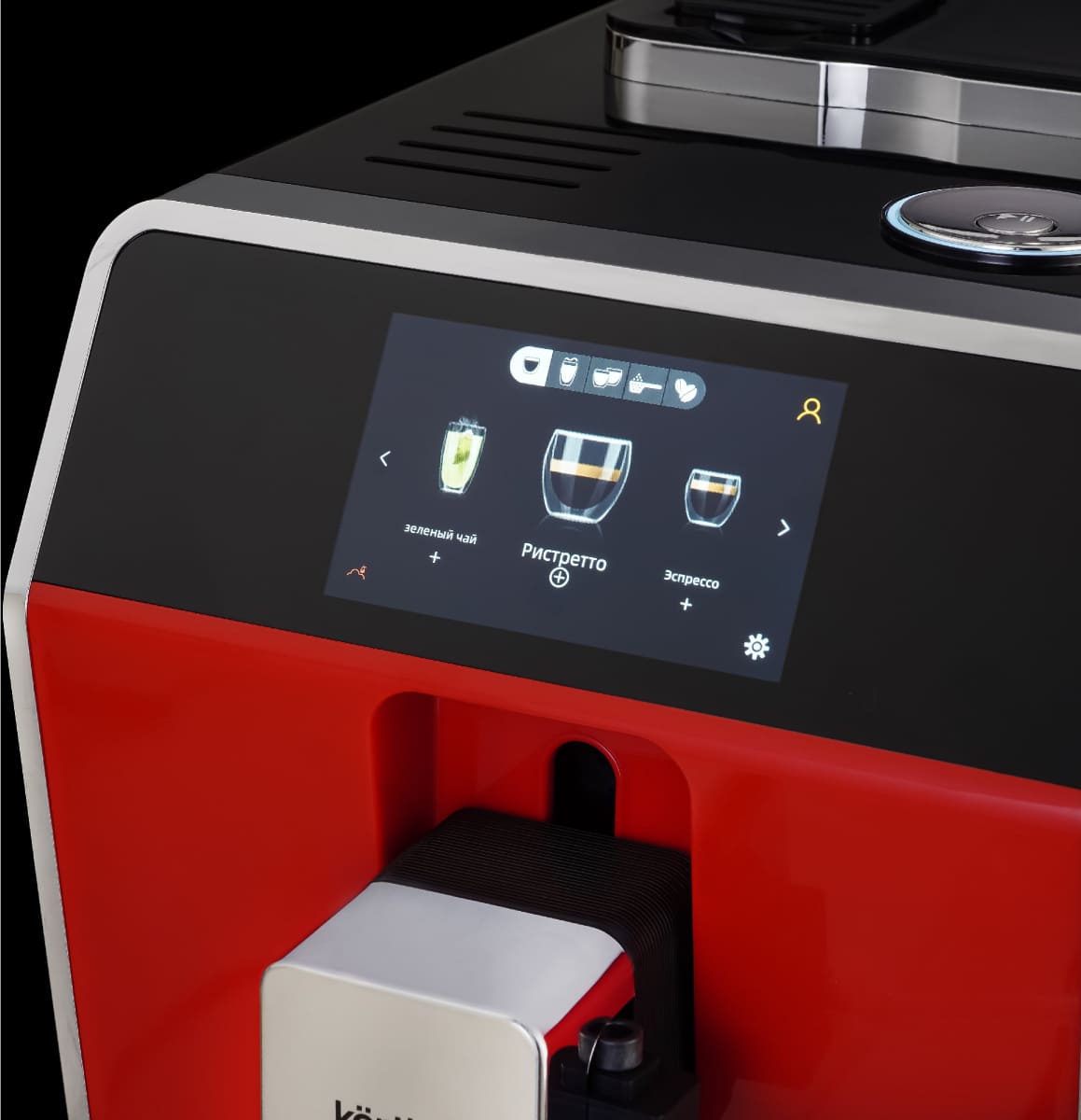 Дисплей в кофемашине позволяет быстро и без труда регулировать параметры работы и контролировать ход приготовления, подсказывает порядок действий и предоставляет возможность выбора вариантов управления при помощи меню. На экране отображается полная информация о состоянии устройства, визуализируется процесс приготовления, появляются предупреждения о том, что необходимо пополнить контейнеры для воды и зерен, а также выводятся сообщения об ошибках.