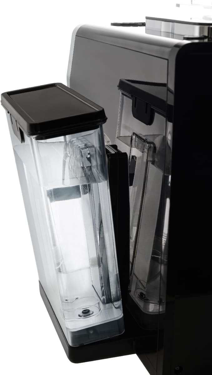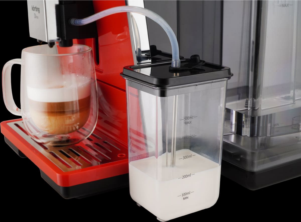 Съемный контейнер для молока в кофемашинах позволяет готовить латте или капучино, не боясь, что молоко испортится в стационарном резервуаре, а также гарантирует полностью автоматический процесс приготовления. Такой контейнер часто называют кувшином для молока благодаря характерной форме, удобной ручке и плотно прилегающей крышке. Контейнер можно легко извлечь сразу после приготовления напитка. Материал изготовления его — прозрачный экологически безопасный пластик. После извлечения контейнер можно хранить в холодильнике: как правило, использовать его следует в течение суток.