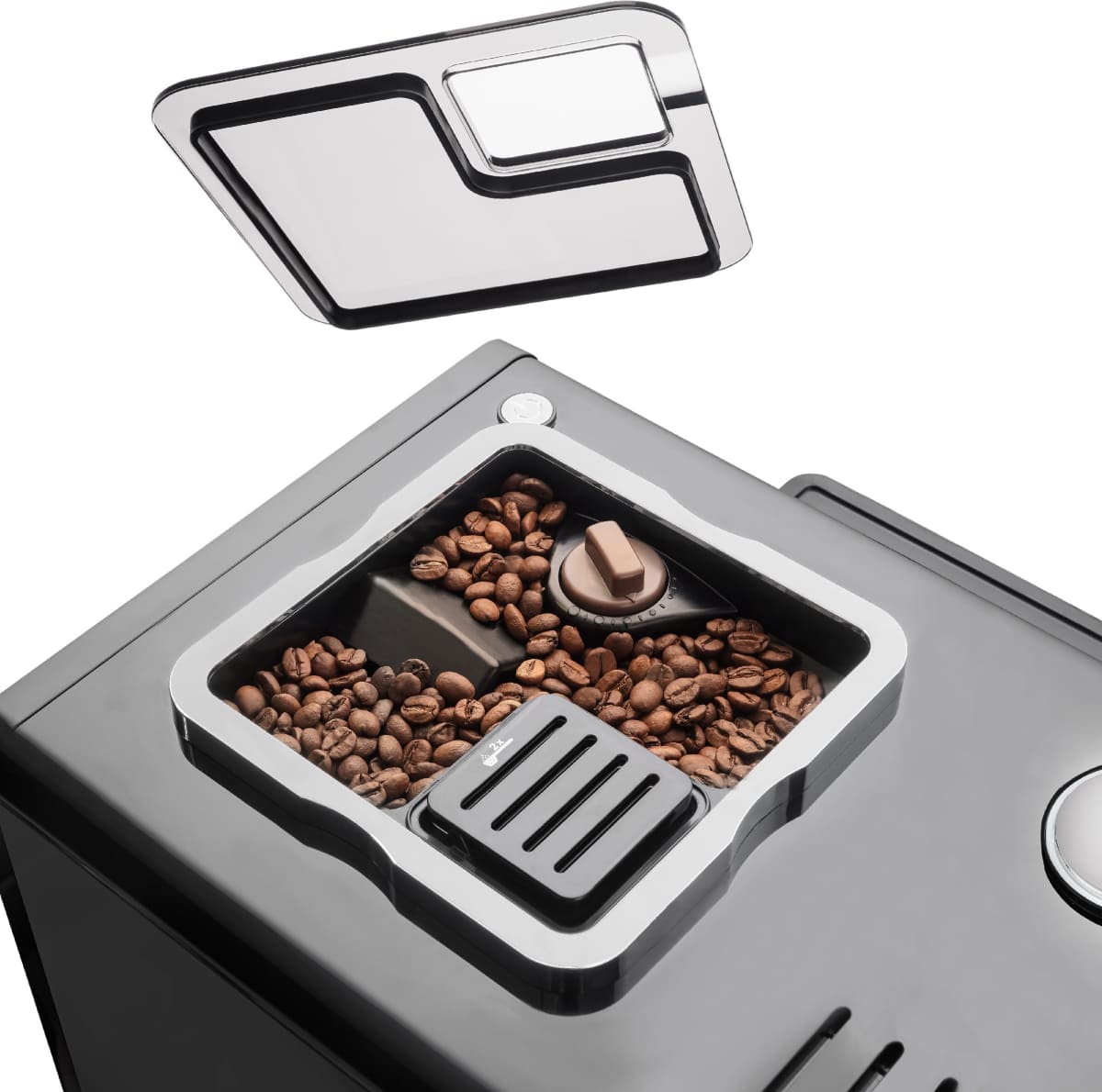 Контейнер для кофейных зерен — принадлежность кофемашин, оборудованных кофейной мельницей. Как правило, над мельницей он и располагается для более удобного помола кофе. Подобные контейнеры изготавливаются из безопасного пластика, прозрачного или непрозрачного, и бывают съемными и несъемными. Они оснащаются специальными датчиками, которые анализируют количество кофе, для оповещения о том, что контейнер скоро опустеет. Доступ к контейнеру для зерен зависит от типа встраивания кофемашины. Так, во встроенных машинах требуется вдвинуть прибор на телескопических направляющих.