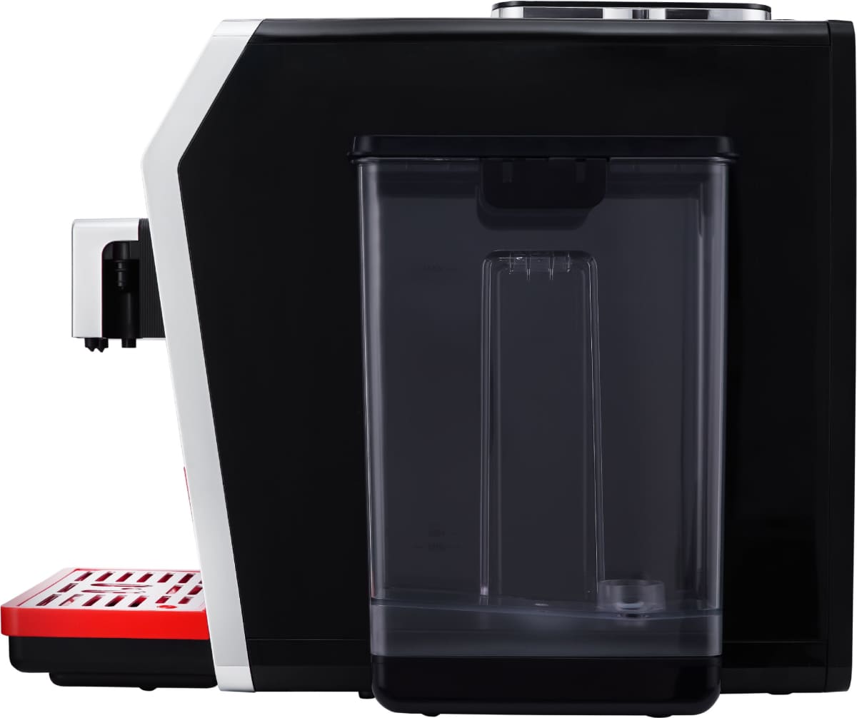 Визуальные характеристики кофемашины играют важную роль при выборе. Цвет корпуса этой модели — красный. Основной материал поверхности — нержавеющая сталь / пластик.