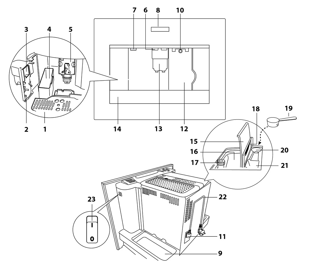 Встраиваемые кофемашины — автоматические устройства для приготовления напитков с молоком или без него. Весь процесс приготовления, от помола зерен и до очистки и промывки по завершении, происходит без участия пользователя. Машины оснащаются вместительными контейнерами для зерен, воды и молока с легким доступом. Размеры встроенных устройств позволяют устанавливать их в колонну с другой техникой: ширина составляет около 60 см, а высота — около 45 см. Как правило, все модели изготавливаются в современном стиле, оснащаются сенсорным управлением, подсветкой, полкой для подогрева чашек.