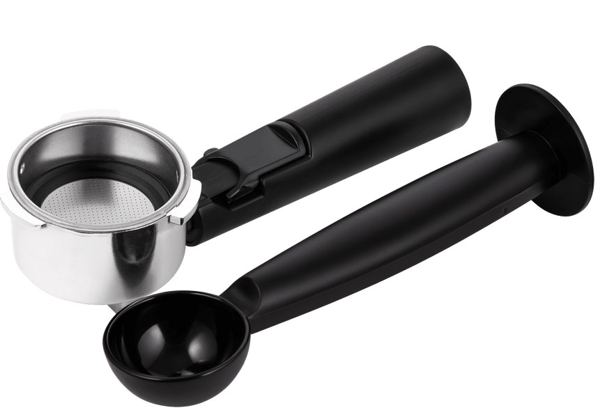 Рожок в рожковых кофемашинах всегда изготавливается из металла и пластика. Рожок, он же портафильтр или холдер, представляет собой фильтродержатель с ручкой, основной элемент конструкции рожковой кофемашины. Молотый кофе помещается в рожок, уплотняется, после чего он закрепляется в варочной группе машины. Стальные массивные рожки хорошо сохраняют температуру и позволяют готовить напитки высокого качества. В машинах для дома рожок часто изготавливается из пластика или комбинации пластика и металла — такая конструкция отличается меньшей прочностью, но на вкус напитка почти не влияет.