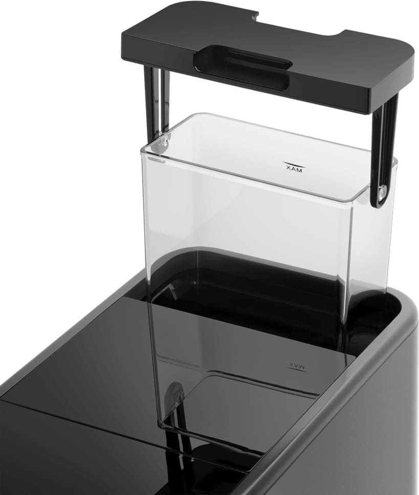 Съемный контейнер для воды во встраиваемых и отдельно стоящих кофемашинах — удобный аксессуар, позволяющий ускорить процесс приготовления напитков. Прозрачные контейнеры с легким доступом могут размещаться на фронтальной или верхней части машины. Для удобного извлечения они оснащаются ручками, залив воды производится через отверстие, которое можно закрыть плотной крышкой. Форма контейнера, как правило, прямоугольная, а материалом изготовления служит прозрачный безопасный пластик. Контейнеры могут оснащаться датчиком уровня воды для напоминания о необходимости их заполнения.