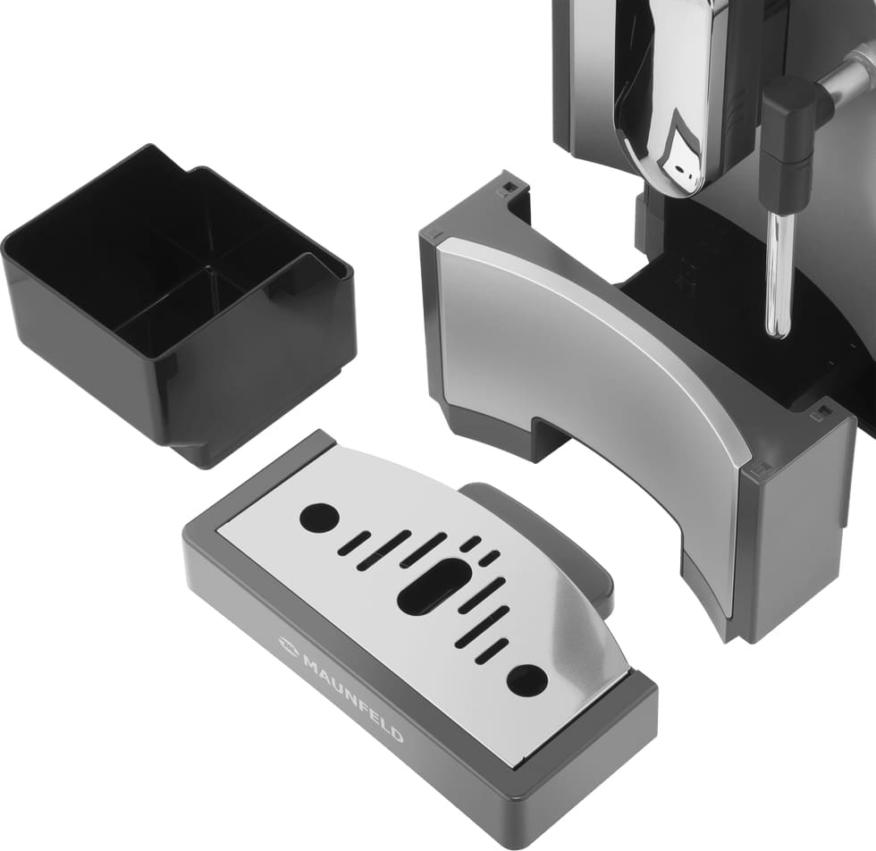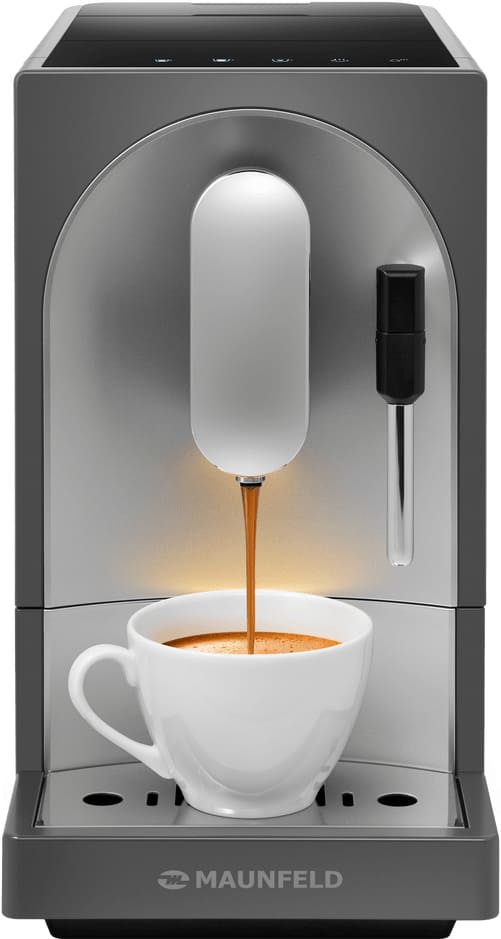 В модели Maunfeld MF-A7021GR используется зерновой кофе: вы можете экспериментировать с крепостью, горчинкой или кислинкой итогового вкуса, при этом качество помола зерен останется на высоте. Автоматическая кофемашина — по сути облегченная и уменьшенная версия приборов из кафе, она обладает широкими возможностями, разнообразным меню и продуманной системой контроля за процессом. Это отличный выбор как для дома, так и для офиса.