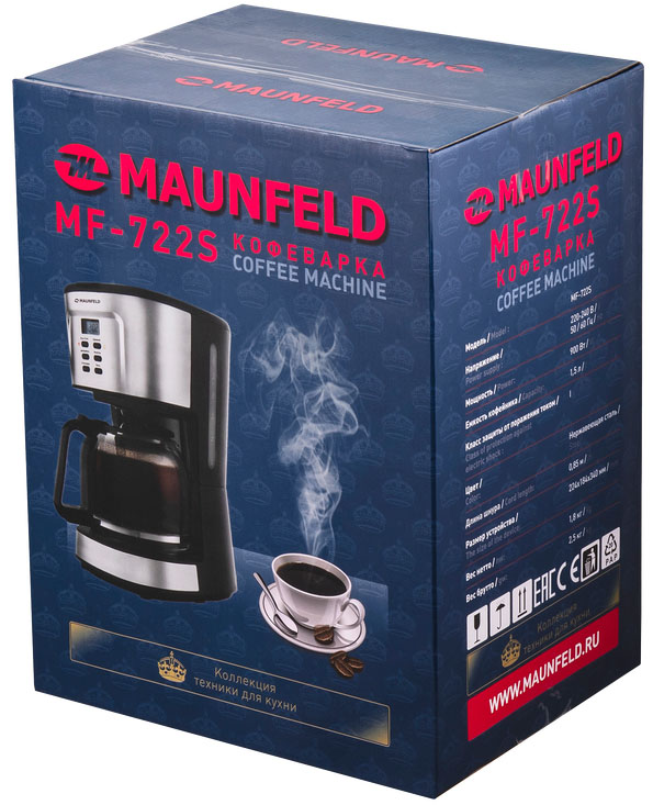 В модели Maunfeld MF-722S используется молотый кофе: экспериментируйте с сырьем крупного и среднего помола, чтобы добиться идеального вкуса. Капельная кофемашина — один из самых простых вариантов для тех, кому не нужно большое разнообразие напитков. Принцип работы таков: капли нагретой воды проходят сквозь отсек с кофе и выходят наружу уже насыщенной ароматной смесью.