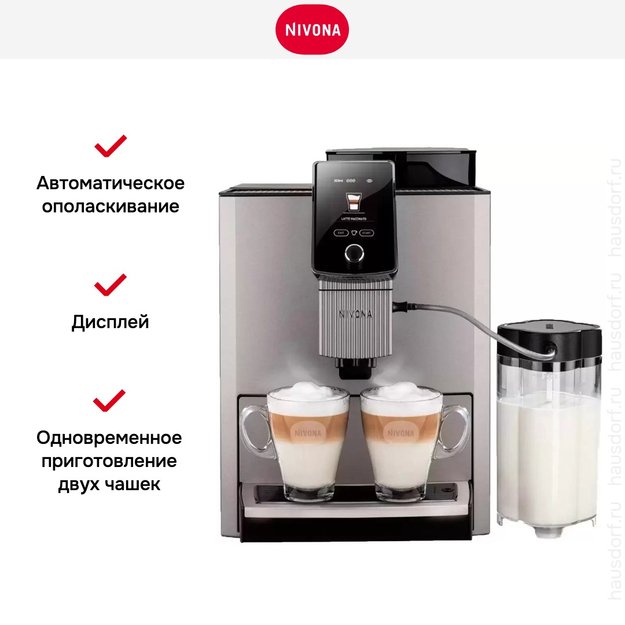 С этой кофемашиной можно приготовить до 65 чашек кофе в день — помимо обычных режимов есть возможность приготовить одновременно две порции кофе и два молочных напитка одной кнопкой.