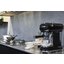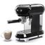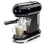Модель принадлежит к коллекции в духе 50-х годов, ее корпус черного цвета изготовлен из эмалированного металла и пластика. В ней сочетаются небольшие размеры — высота 30 см и ширина 33 см, — и обширный набор возможностей. Прибор предусматривает использования молотого кофе, а также таблеток «Paper Pods» и поможет получить напитки без молока — например, эспрессо, и напитки с молочной пенкой — такие, как капучино или латте макиато. Пользователь может задать приготовление одной или двух чашек напитка одним нажатием, выбрать высокую, среднюю или низкую температуру кофе, задать жесткость воды. Подача пара для капучино или латте макиато производится при помощи специального переключателя. Предусмотрена функция автоматического отключения через 9 минут, 30 минут или 3 часа. Очистка от накипи производится в автоматическом режиме. В комплект входит лоток для сбора капель с индикатором уровня воды, который поможет защитить поверхность стола, резервуар для воды объемом 1 литр с дополнительным фильтром, капучинатор из нержавеющей стали, а также фильтры на одну или две чашки и мерная ложка-темпер для трамбовки кофе. В верхней части имеется подставка для подогрева чашек.