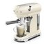 Кофемашина-эспрессо от Smeg в стиле 50-х годов, в кремовом цвете. Компактная модель с системой нагрева Thermoblock и капучинатором из нержавеющей стали приготовит изумительные кофейные напитки. Удобная панель управления, система защиты против капель и индикация необходимости программы очистки от накипи обеспечат комфортный уход за прибором.