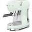Кофемашина Smeg ECF02PGEU — это сочетание элегантного дизайна и функциональности. Стиль 50-х годов в ее оформлении придает ей шарм и уникальность, а пастельно-зеленый цвет корпуса, выполненного из пластика, делает ее ярким акцентом в любом интерьере. Рожок из металла гарантирует прочность и долговечность, а переключатели, выполненные в форме кнопок и поворотных элементов, обеспечивают удобство использования.
