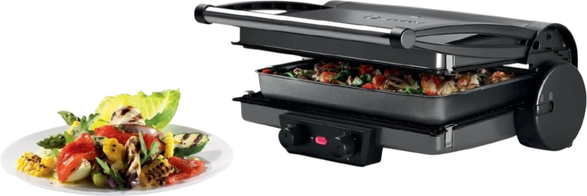 Отдельный гриль — отличное решение для дачной кухни. Он может быть встраиваемым или переносным, электрическим или газовым, открытым или прижимным. Принцип работы во всех случаях один — продукты быстро обжариваются под воздействием высоких температур (в районе 270 градусов). Благодаря этому можно получить любимые блюда без открытого огня.