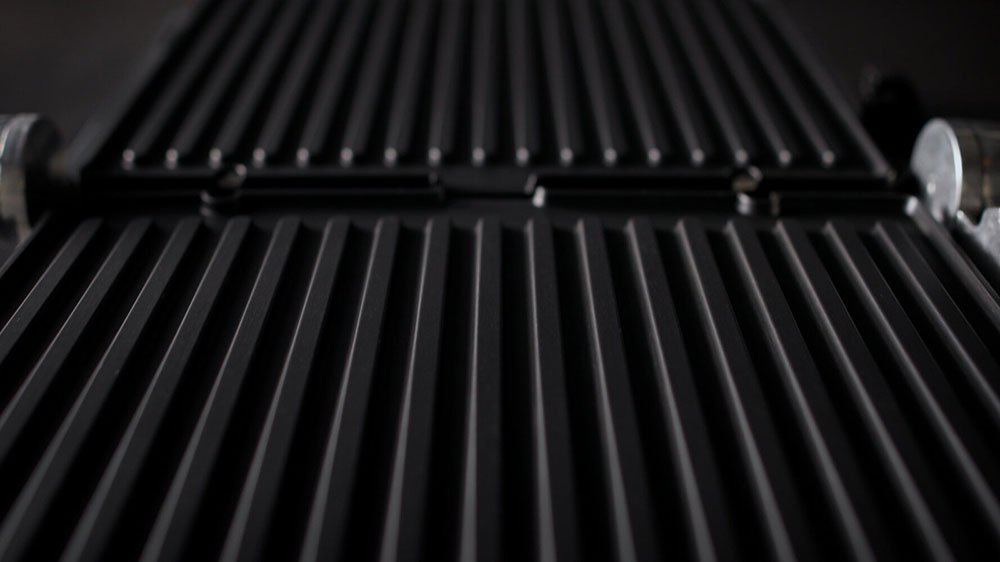 Гриль можно раскрыть на 180° и готовить разные блюда одновременно на обеих пластинах