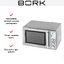 Bork W800 — отдельно стоящая микроволновая печь с камерой объемом 32 литра. Многофункциональная модель оснащена грилем и конвекционным вентилятором, она позволяет готовить в нескольких режимах, в том числе комбинированных. 19 автоматических программ предназначаются для приготовления блюд, размораживания по весу и по времени, разогрева. Имеется функция поддержания тепла готовых блюд. Внутренняя поверхность камеры изготовлена из нержавеющей стали. Сенсор IQ-разогрева и приготовления фиксирует температуру в камере и регулирует процесс приготовления, автоматически подбирая мощность. Функция автоопределения веса позволяет вводить только тип продуктов. Электронная панель управления с кнопками и большим цифровым дисплеем оснащена таймером с автоматическим отключением и подачей звукового сигнала.