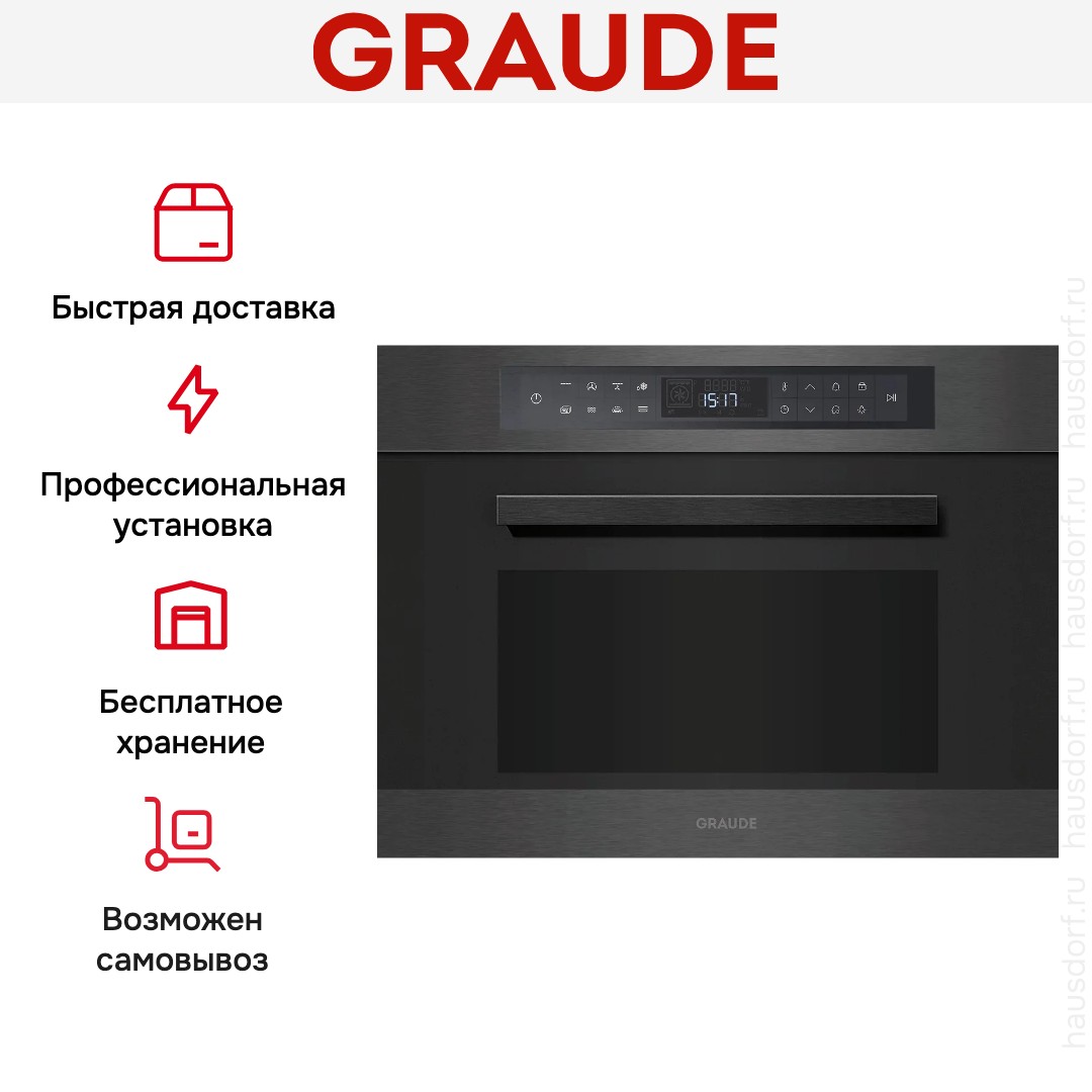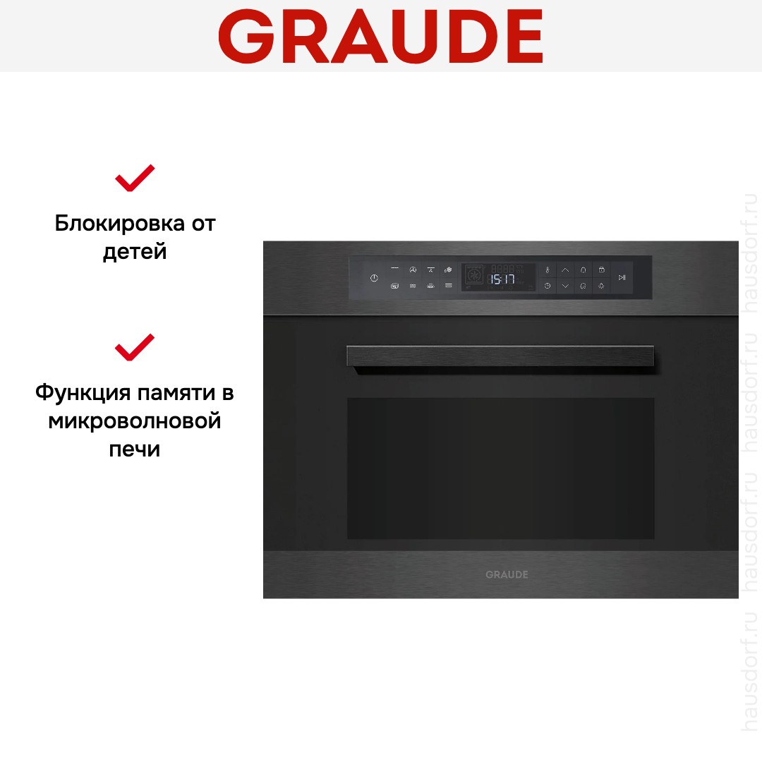 Количество режимов в данной модели Грауде: 8 шт. Для обработки продуктов и готовых блюд используются следующие виды нагрева: Микроволны, Гриль, Гриль + конвекция (обдув), Обдув горячим воздухом (конвекция), Микроволны + гриль, Микроволны + конвекция (обдув), Микроволны + конвекция (обдув) + гриль, Автоматический режим разморозки. Выберите гриль, чтобы получить поджаристую корочку на мясе или рыбе. Конвекция способствует равномерную распространению горячего воздуха по всей камере, поэтому даже если блюдо большое, все его кусочки пропекаются одинаково. Отдельная опция для размораживания продуктов и полуфабрикатов облегчает жизнь — не нужно самостоятельно настраивать параметры.