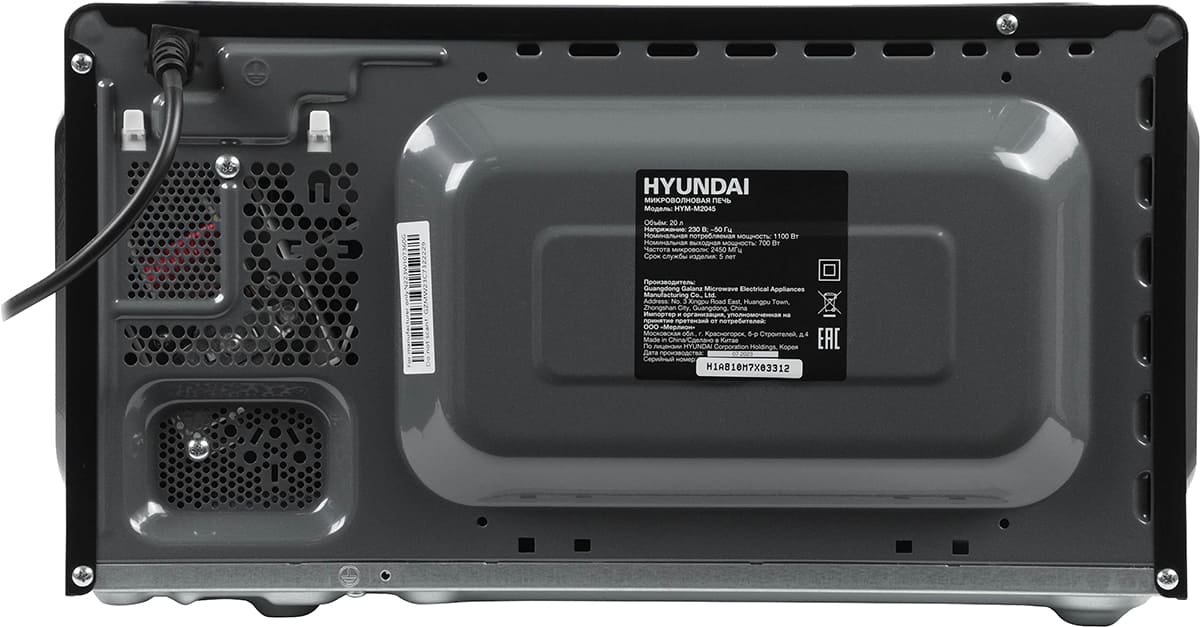 Отдельностоящая микроволновая печь Hyundai HYM-M2045 — компактное и полезное дополнение к уже имеющейся кухонной технике. Ее можно установить на шкаф, на свободную столешницу, но не рекомендуется ставить на другие приборы, например, холодильник. Цвет этой модели: черный.