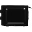 Модели с откидной дверцей и верхней или нижней панелью управления — как правило, встраиваемые, с камерой большого объема и увеличенным набором возможностей. Некоторые модели снабжены ручками, другие открываются нажатием на фронтальную часть. Они могут устанавливаться в шкаф или колонну с другой бытовой техникой, однако высоту установки следует выбирать, исходя из роста пользователя. Откидывающаяся дверца может заслонять обзор, если СВЧ-печь установлена слишком высоко.