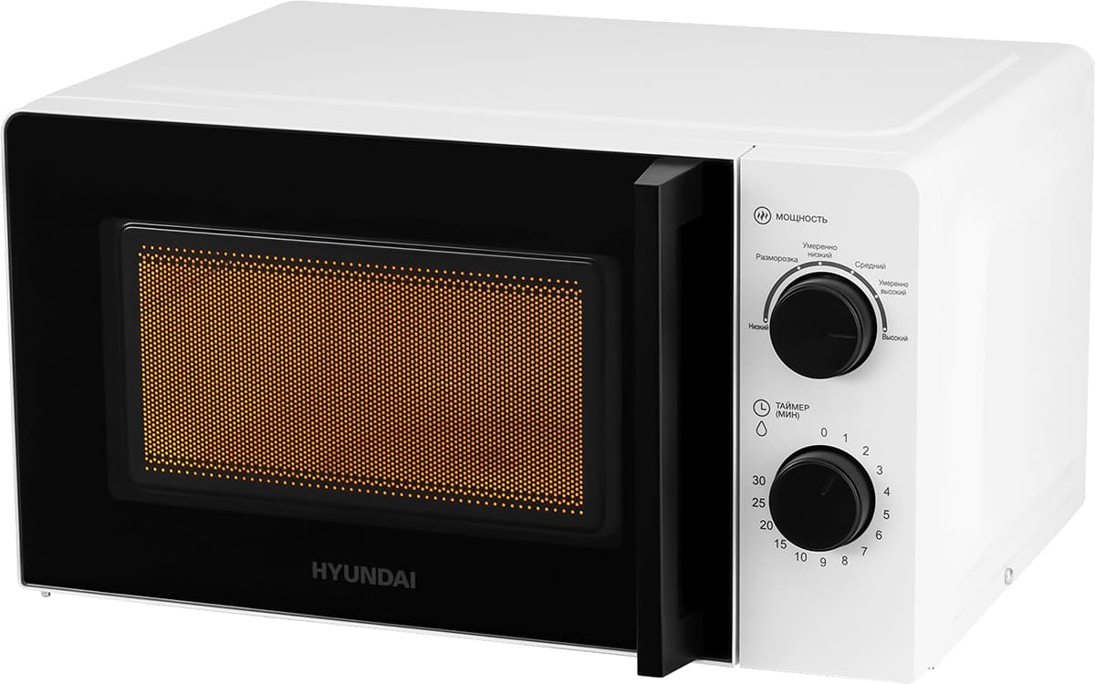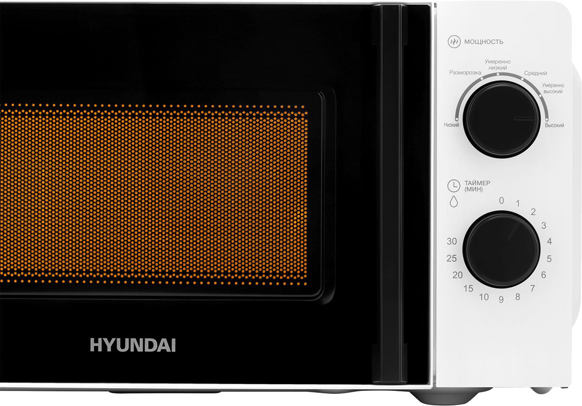 Количество режимов в данной модели Хендай: 6 шт. Для обработки продуктов и готовых блюд используются следующие виды нагрева: Микроволны. Отдельная опция для размораживания продуктов и полуфабрикатов облегчает жизнь — не нужно самостоятельно настраивать параметры.