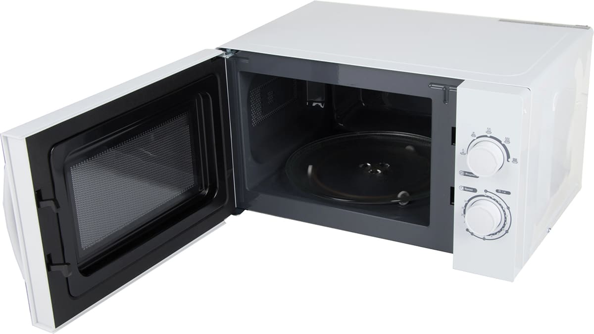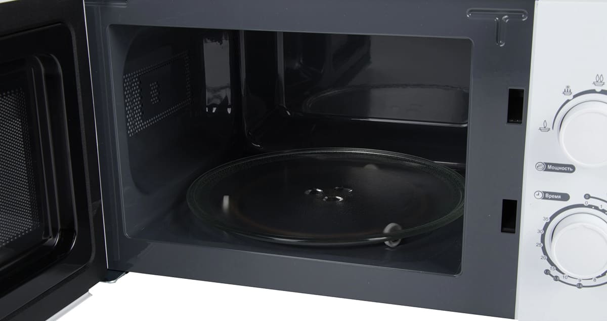 Материал внутренней поверхности — эмаль легкой очистки. Полезный объем для готовки — 20 л. Для установки и прогрева посуды используется классическое вращающееся блюдо. Стандартное механическое управление не вызовет трудностей ни у кого из вашей семьи. Для изменения настроек или выбора программ используются следующие переключатели: поворотные.