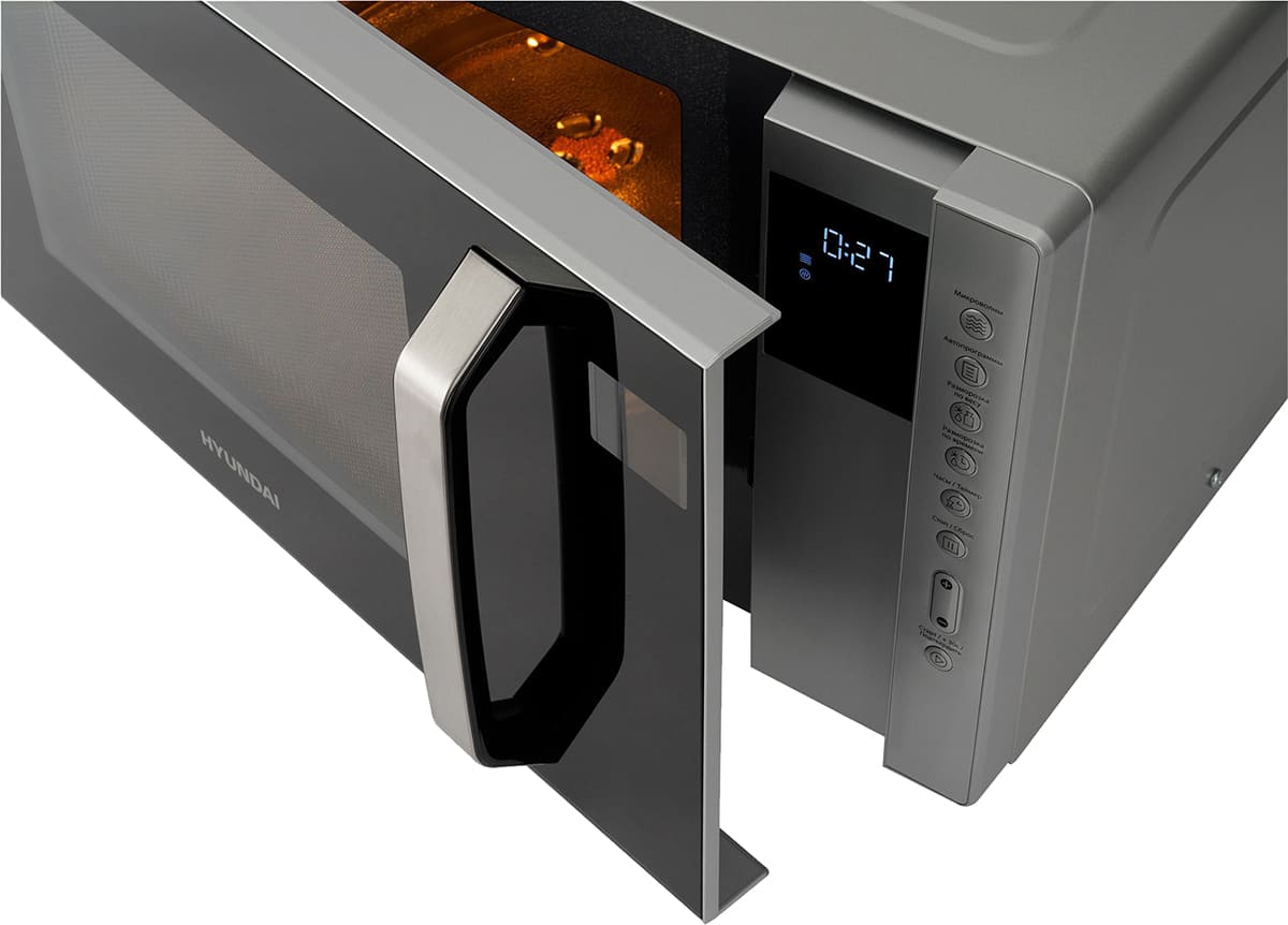 Количество режимов в данной модели Хендай: 5 шт. Для обработки продуктов и готовых блюд используются следующие виды нагрева: Микроволны, Автоматический режим разморозки. Отдельная опция для размораживания продуктов и полуфабрикатов облегчает жизнь — не нужно самостоятельно настраивать параметры. Автоматические программы для приготовления добавлены производителем также для упрощения работы.