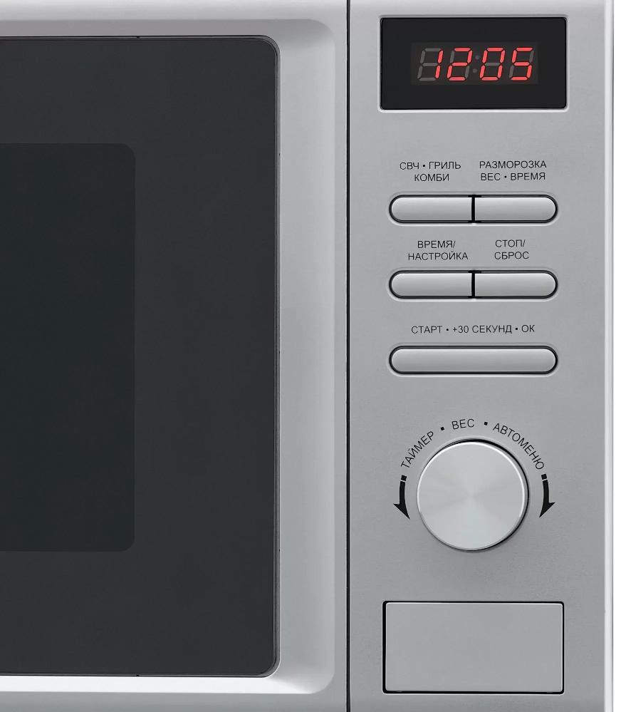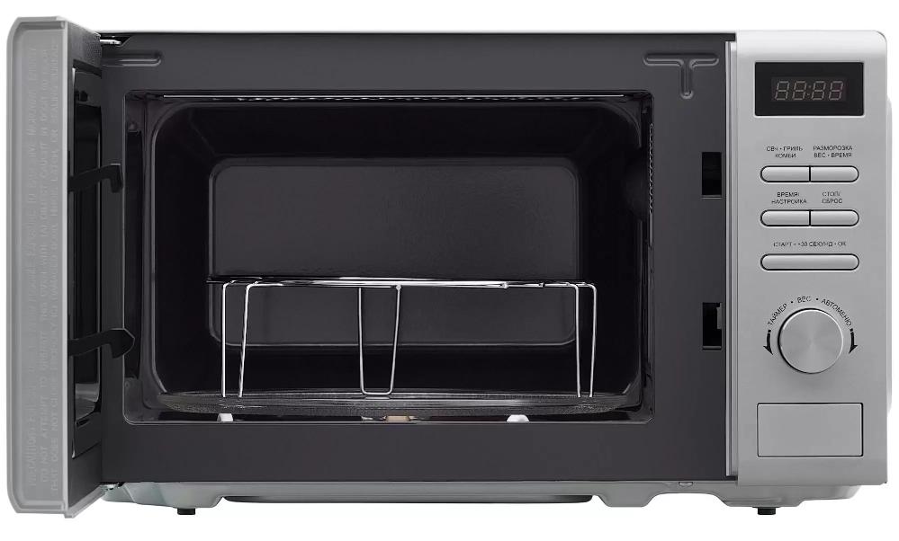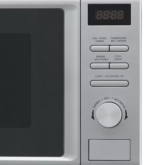 Для обработки продуктов и готовых блюд используются следующие виды нагрева: Микроволны, Гриль. Выберите гриль, чтобы получить поджаристую корочку на мясе или рыбе. Тип гриля в этой микроволновке кварцевый. Если вы спешите, а еду нужно разогреть, используйте быстрый старт — благодаря ему 30 секунд прибор работает на полной мощности.