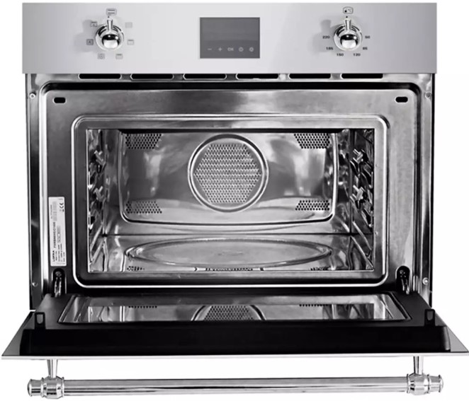Нержавеющая сталь — быстро нагревается и хорошо переносит высокие температуры, поэтому ее используют в микроволновках с конвекцией.