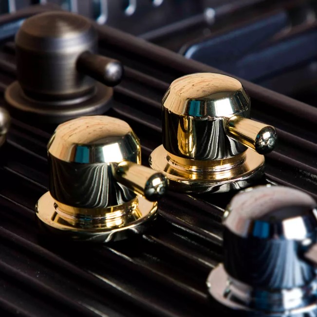 Более интересны цветовые решения для многофункциональных встраиваемых микроволновых печей. Эти приборы отличаются не только большей вместимостью, достаточно высокой ценой и широким набором возможностей, но и обширным выбором дизайнерских решений, а значит — и разнообразной по цвету фурнитурой. К ней можно отнести рукоятки поворотных переключателей, ручки-рейлинги у откидных дверей, элементы отделки. Кроме уже перечисленных оттенков, встроенные микроволновки могут оснащаться фурнитурой красного, золотого, серого цветов, а также оттенков меди и состаренного серебра.