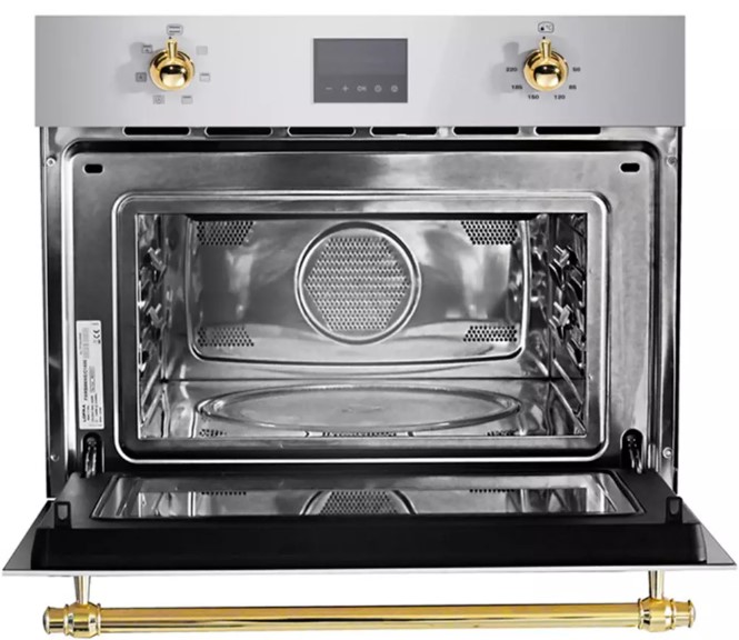 Нержавеющая сталь — быстро нагревается и хорошо переносит высокие температуры, поэтому ее используют в микроволновках с конвекцией.
