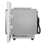 Микроволновые печи могут иметь навесную или откидную дверцу. Модели с навесной дверцей, запирающейся на механические защелки, могут быть как встраиваемыми, так и отдельно стоящими. Такие СВЧ-печи с дверцей, открывающейся влево или вправо, могут относиться к любой категории цен: от самых простых и дешевых до премиальных моделей. Недостатки дверцы с петлями сбоку — выступающая ручка, которая затрудняет очистку фасада, и небольшой угол открытия не более 90 градусов, который может препятствовать, например, размещению прибора в углу. Если ручка действительно мешает, стоит выбрать модель, дверца которой открывается нажатием на кнопку или прикосновением к сенсору на боковой панели управления.