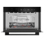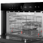 Компактная модель с передней панелью глубокого черного тона и сенсорным управлением смотрится технологично и строго, а внутренняя поверхность из нержавеющей стали добавляет практичности и лёгкости в уходе. Откидная дверца открывается по нажатию кнопки, упор расположен снизу, что делает доступ к камере удобным. Сочетание цифрового дисплея и сенсорных кнопок подчёркивает аккуратный, лаконичный образ встраиваемой техники.